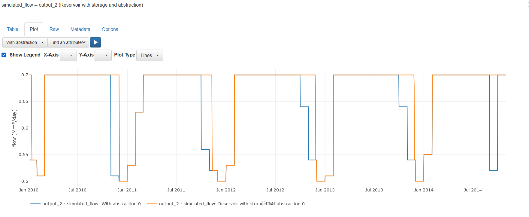في السيناريو الجديد، قم بتعيين **الحد الأقصى\_الصوت** من storage node إلى 6 ملم 3 و **الأولي\_وحدة التخزين\_جهاز كمبيوتر** إلى 0.33. سيبدأ الخزان بعد ذلك المحاكاة عند 30٪ بالكامل. بدلاً من ذلك **الأولي\_الصوت** يمكن ضبطه على 1.0\_\_8 مم 3. إما **الأولي\_الصوت** أو **الأولي\_وحدة التخزين\_يجب ضبط جهاز الكمبيوتر**.
