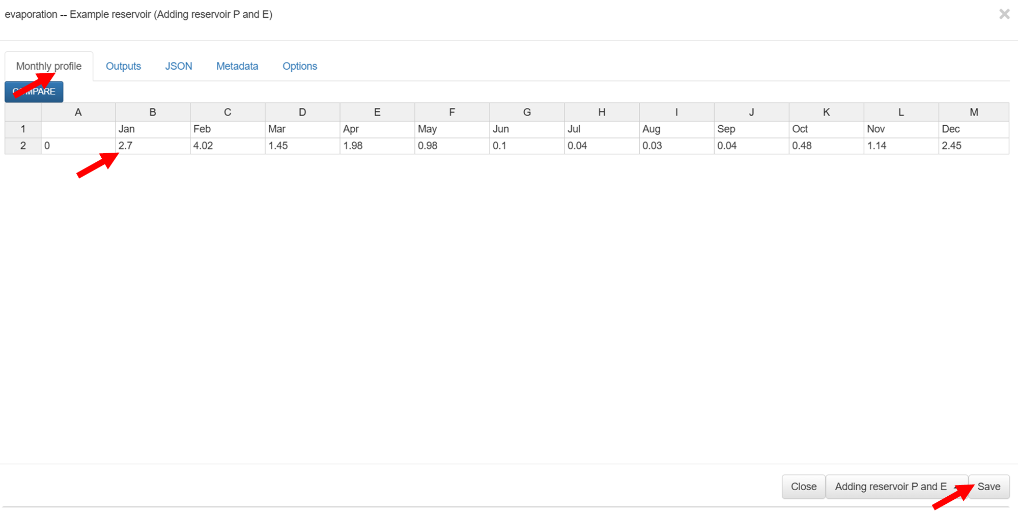 La evaporación se puede definir mediante un parámetro o un escalar. Por ejemplo, se puede usar una serie temporal que esté correlacionada con la serie temporal del escenario de flujo. Sin embargo, en este caso, utilizaremos un [Parámetro de perfil mensual](https://water-strategy.gitbook.io/water-strategy/modelling-fundamentals/parameters/monthly-profile) que asigna un valor diferente a cada mes del año.