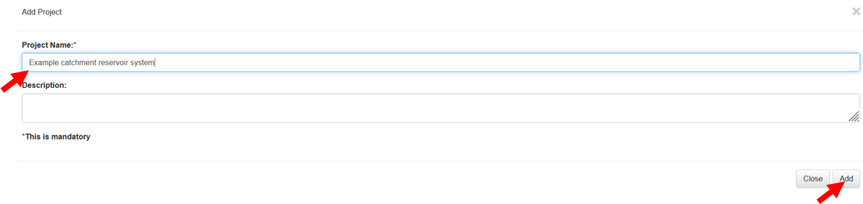 * Introduzca el nombre del proyecto y haga clic **Añadir**.