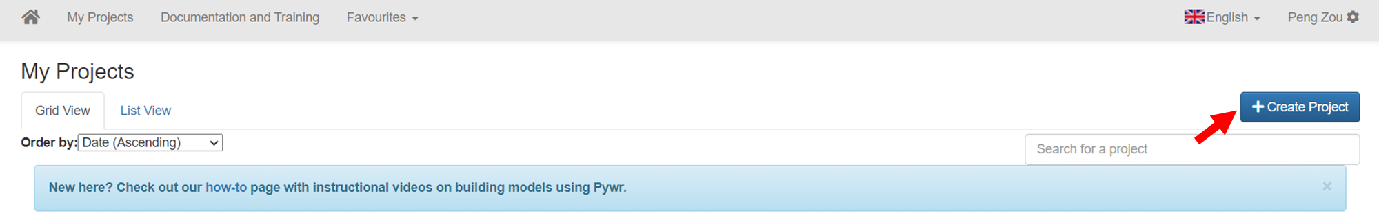 ## 2. Haga clic en el proyecto creado y ábralo