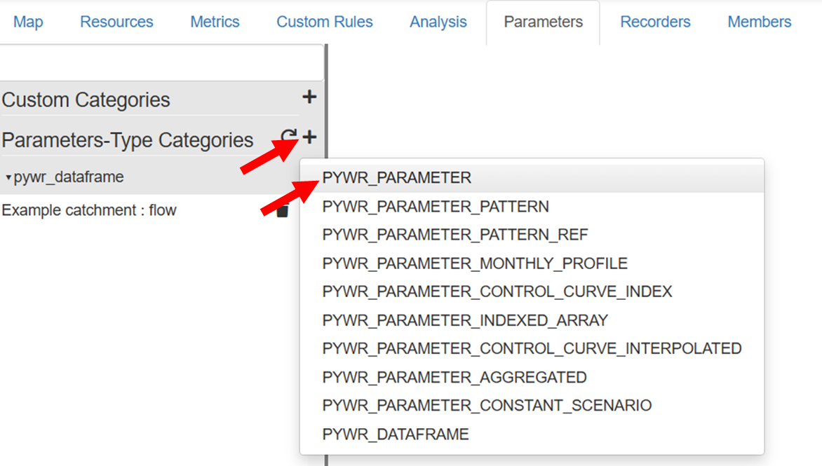 2. Fai clic su **+** per aggiungere un nuovo parametro. Seleziona **PYWR\_PARAMETRO**