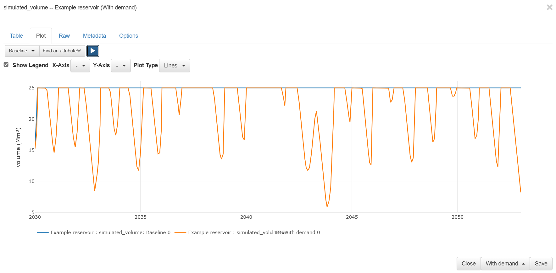 Veja o **simulado\_volume** do reservatório neste cenário e compare com a linha de base.