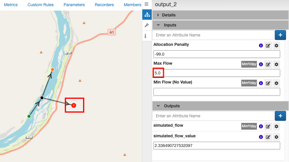 在这种情况下，我们将向需求节点分配需求。将需求输出节点的最大\ \_flow 更改为 5.0 mm3/天
