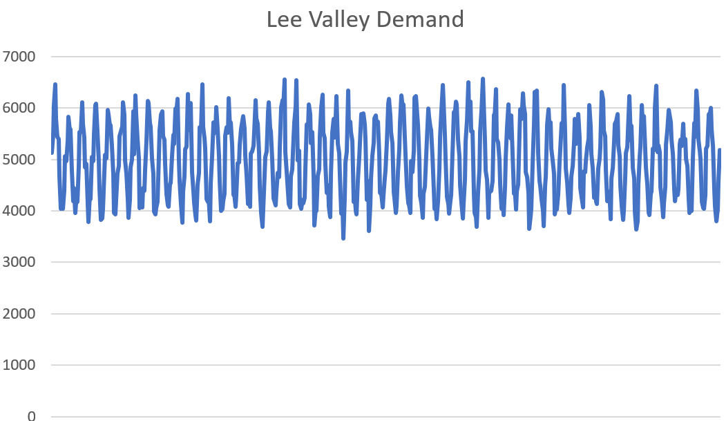 下载的文件， **泰晤士河\_李\_山谷\_demand.csv**，包含一个由两个关键列构成的时间序列数据集：